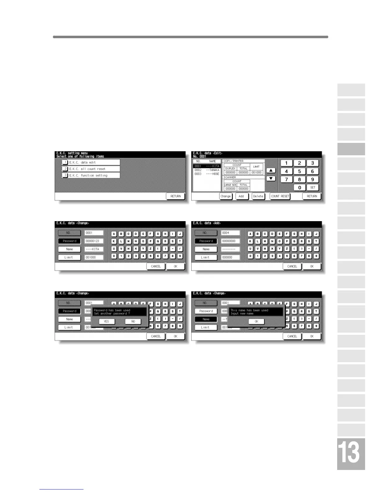 1 Touch [4] E.K.C. function setting on the Key Operator Mode Screen. Enter an