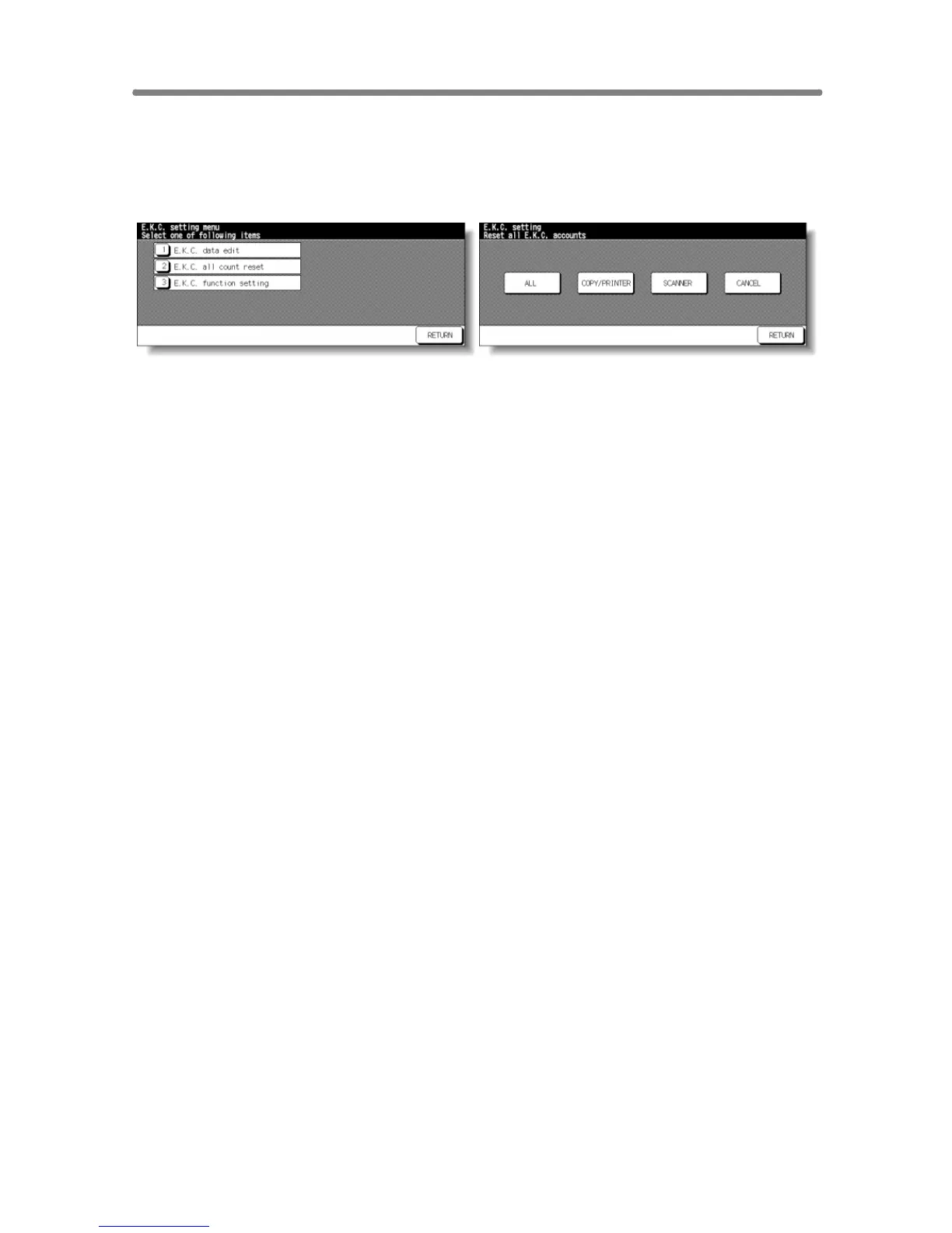 EKC Setting Menu Screen EKC All Count Reset Screen
