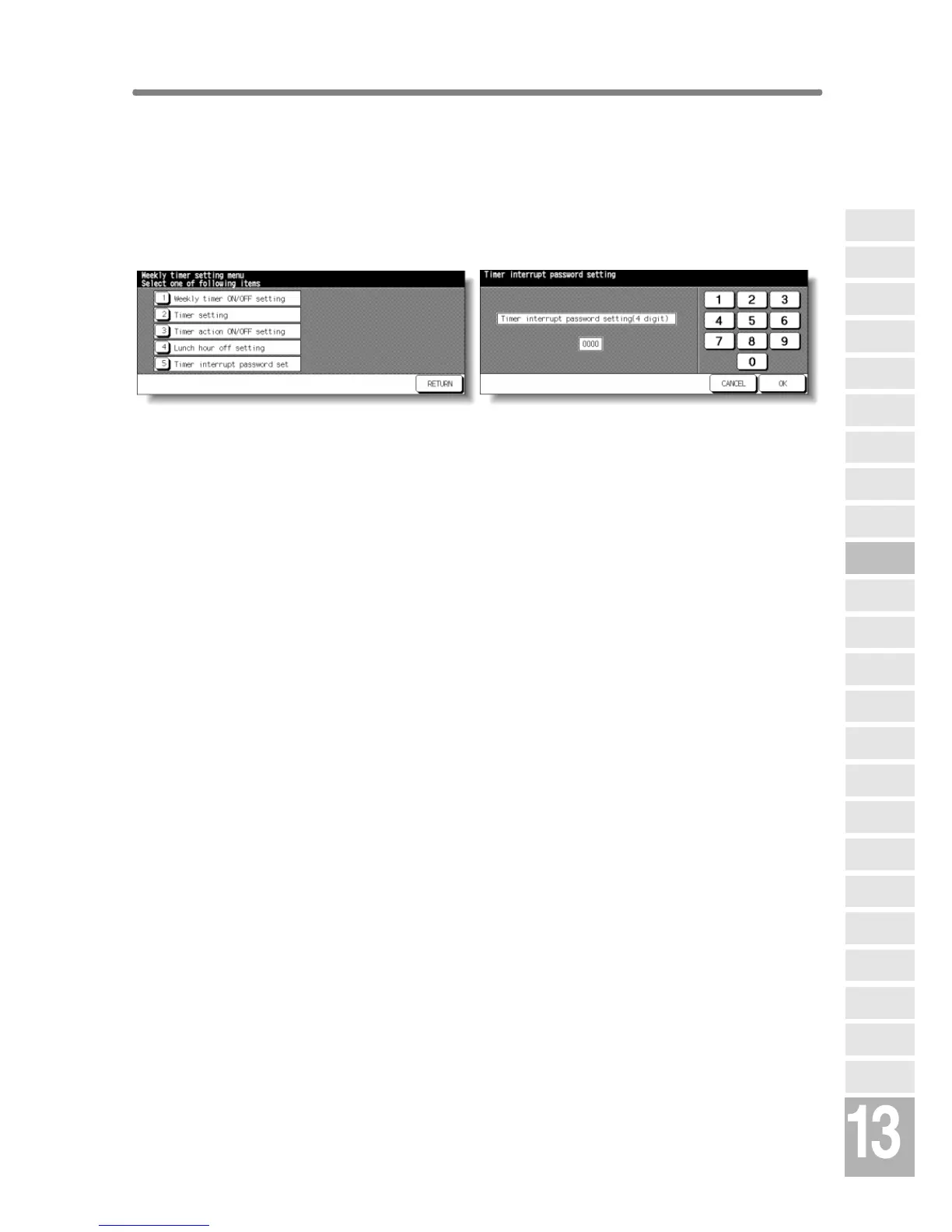 Weekly Timer Setting Menu Screen Timer Interrupt Password Setting Screen