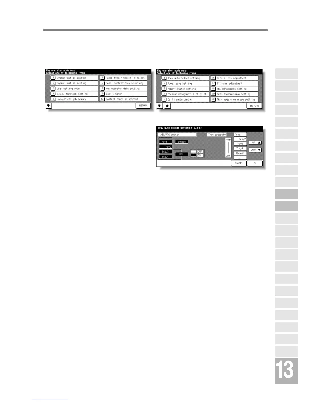 1 Touch [11] Tray auto select setting on the Key Operator Mode Screen to