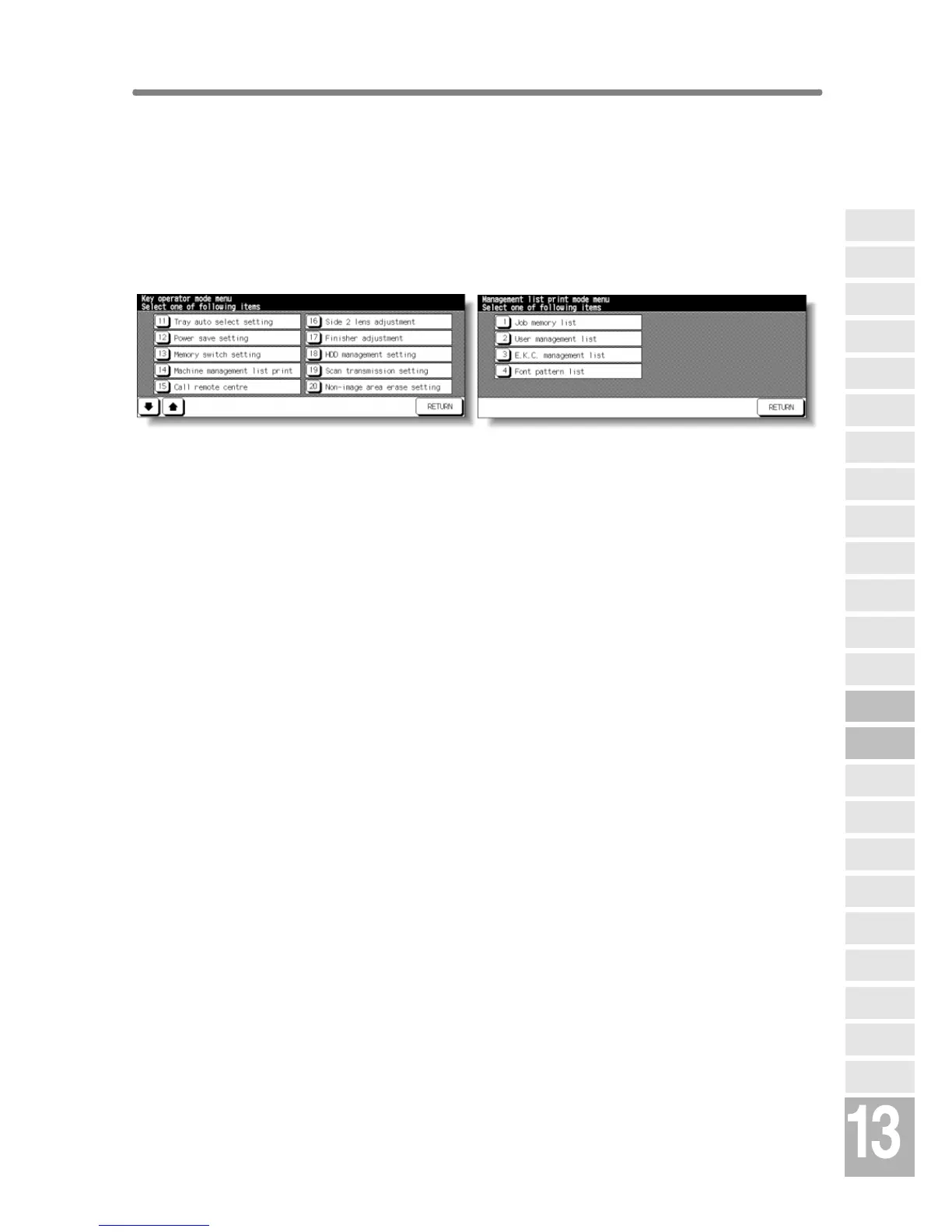 Key Operator Mode Screen Management List Print Menu Screen