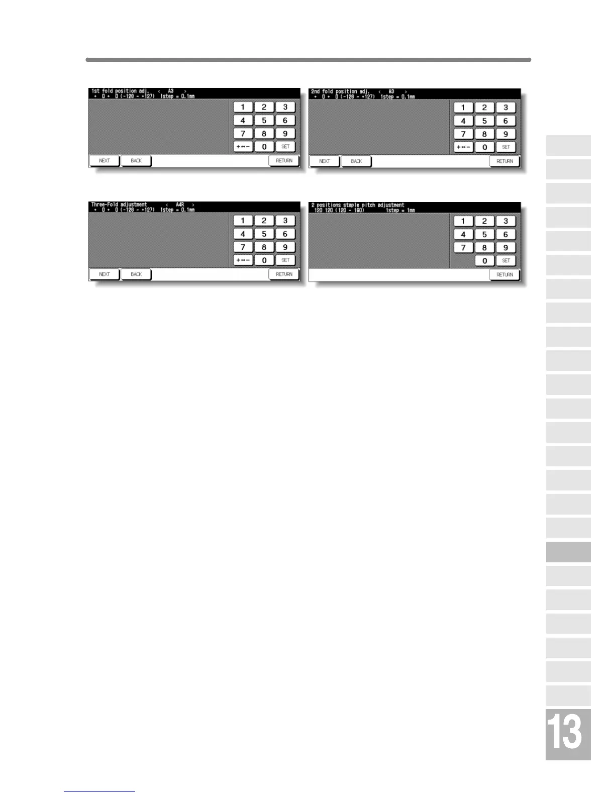 Touching RETURN restores the Finisher Adjustment Menu Screen.