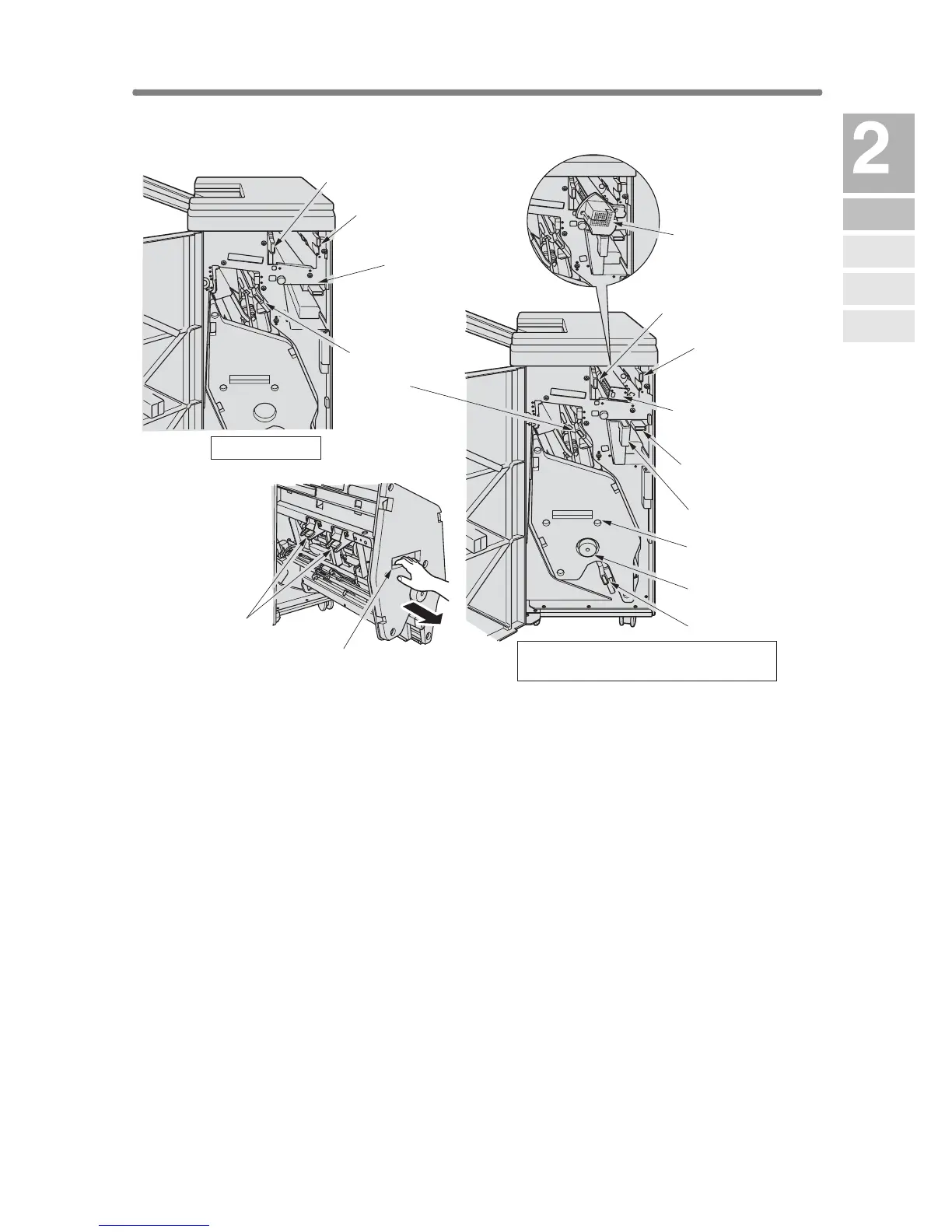 5 Stacker conveyance lever opens to remove mishandled paper.