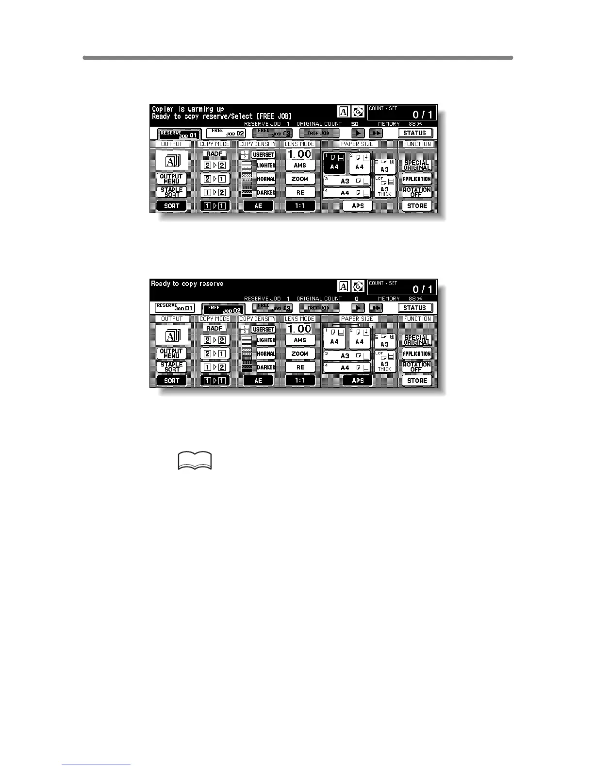 6. If setting more than one reserve job, touch the next FREE JOB to