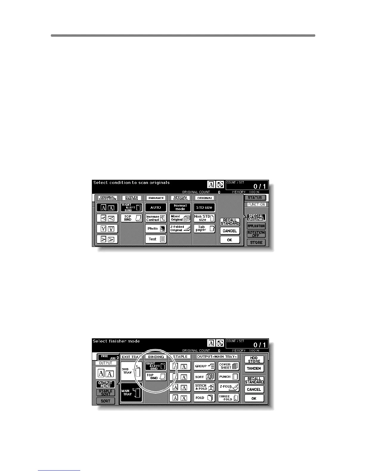 To change the original set direction, touch SPECIAL ORIGINAL on the Basic Screen to