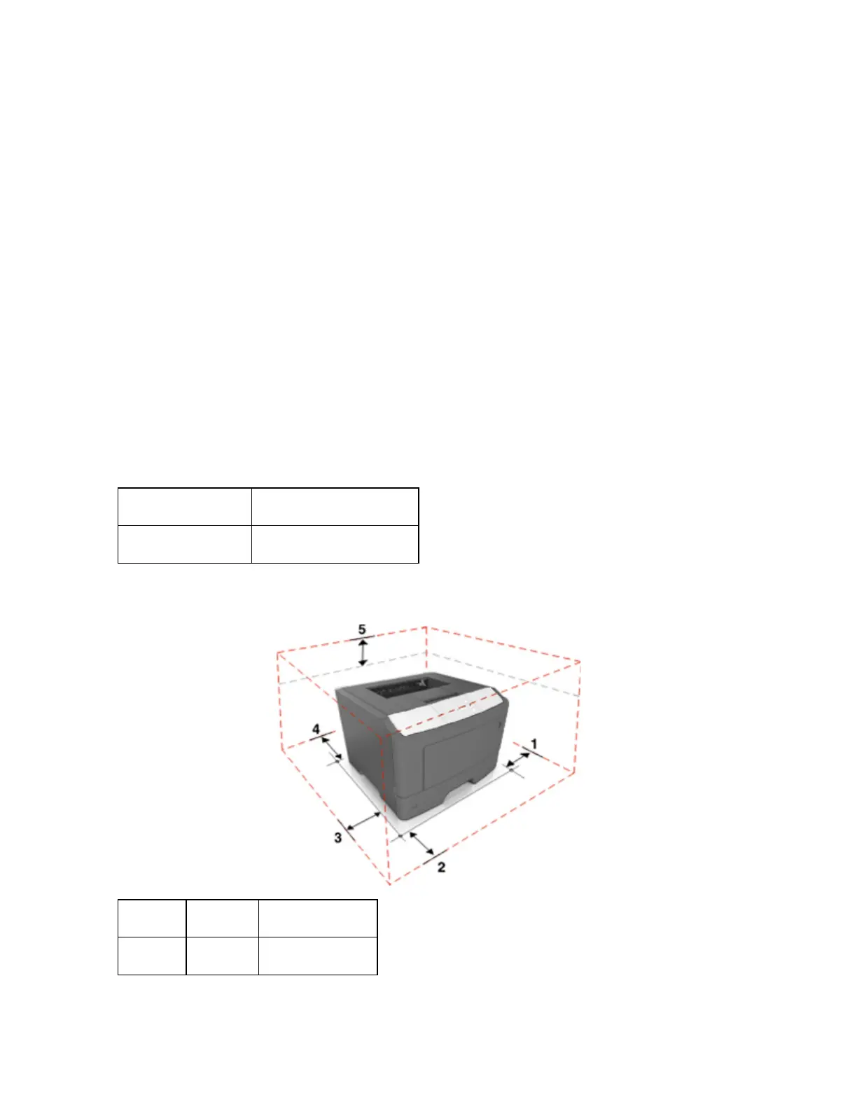 • Allow the following recommended amount of space around the printer for proper ventilation:
