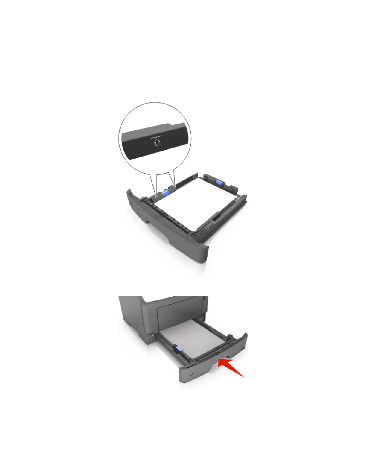 - Make sure the paper is below the maximum paper fill indicator located on the side of the width