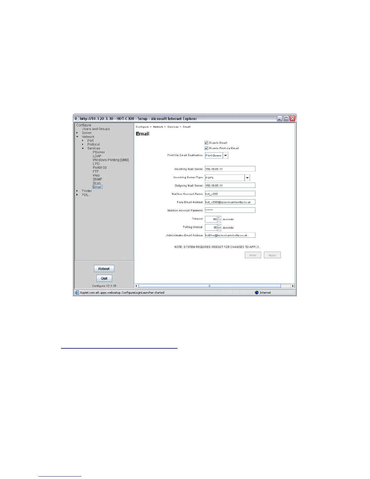 6) Click on Network\Services\E-mail and the following screen will be displayed.