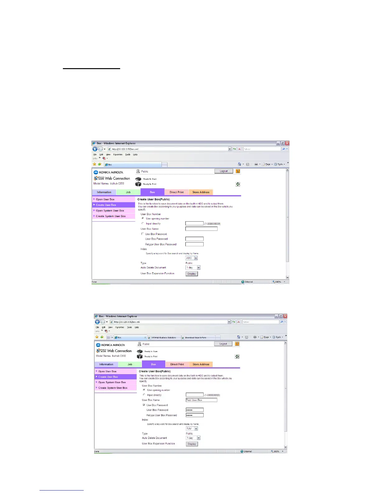 4) Enter a ‘User Box Name’, ‘Password’ if required and ‘Index’ under which the