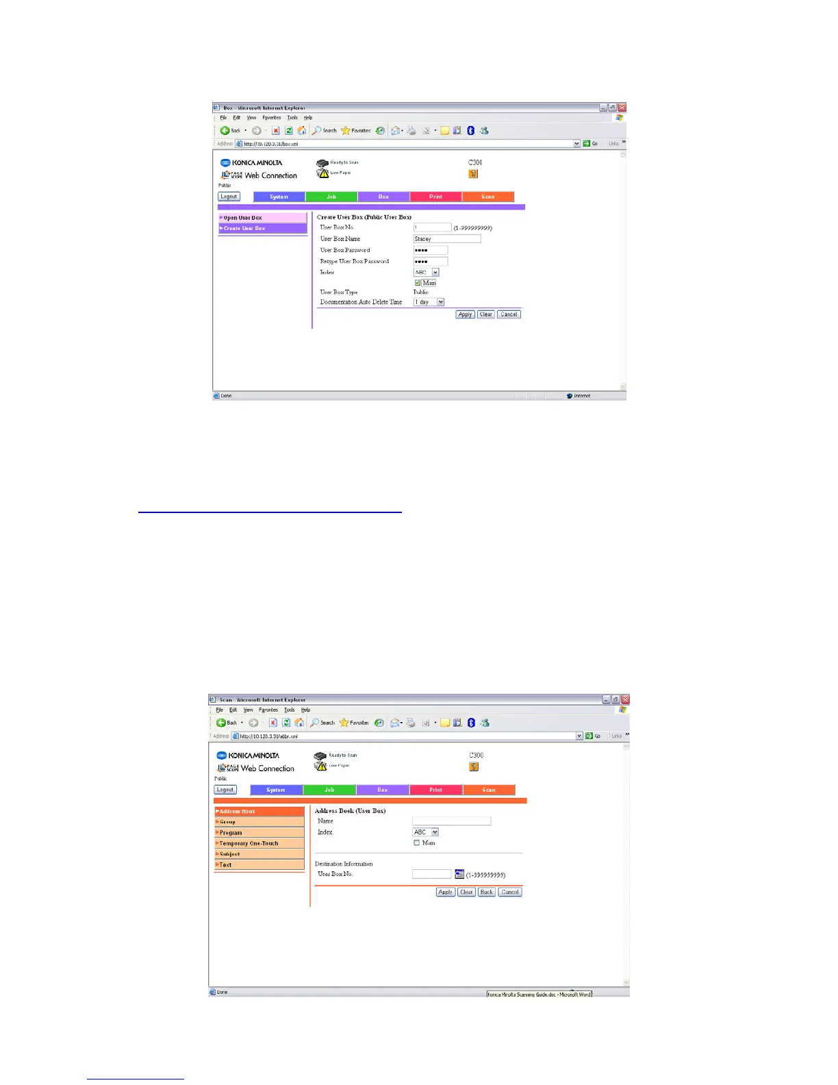 appear on the machine. The User Box No. must relate to the User Box you