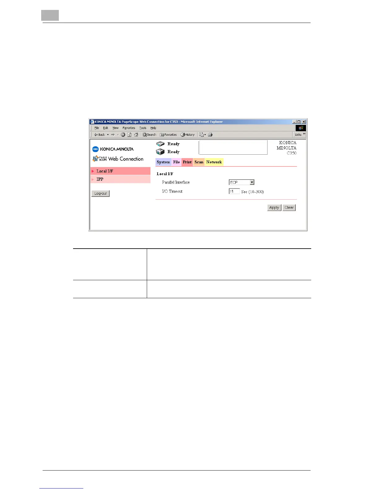 ➜ Click the “Print” tab, and then click Local I/F in the menu.