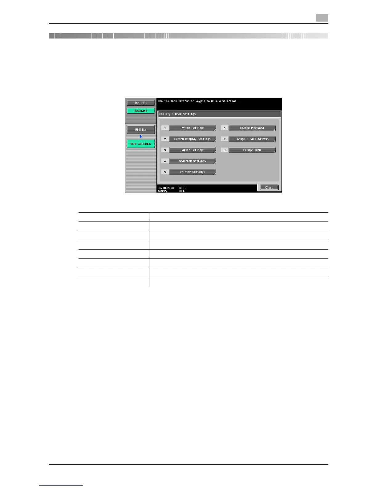 The contents of these setting items depend upon how the Administrator settings are configured. User