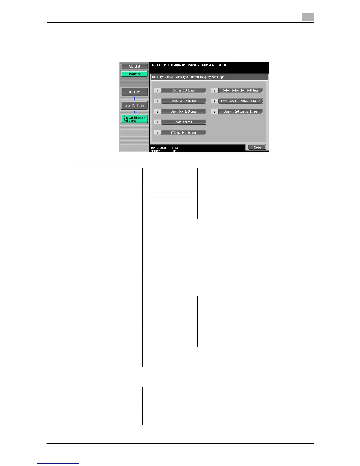 % Press the [Utility/Counter] key ö [User Settings] ö [Custom Display Settings].