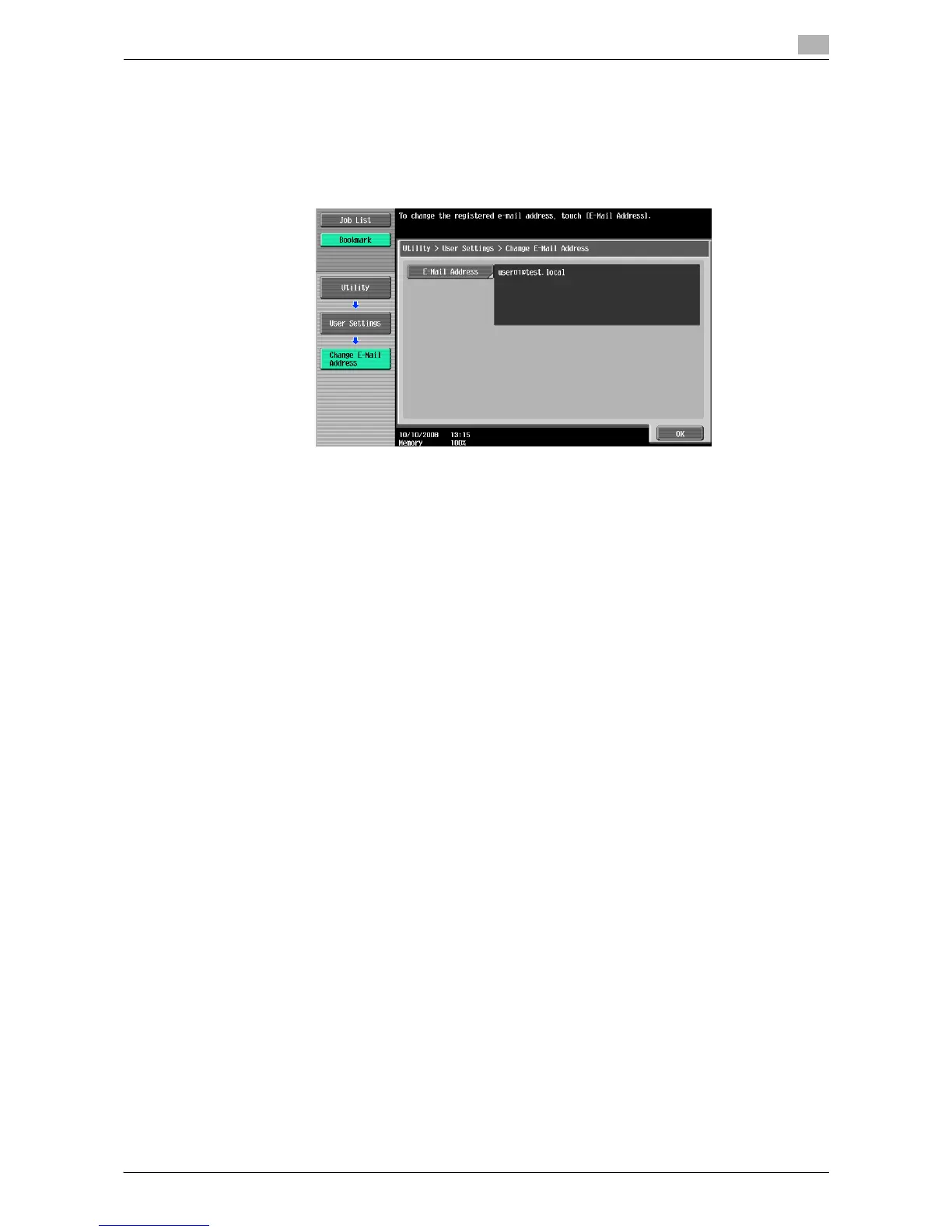 1 Press the [Utility/Counter] key ö [User Settings] ö [Change E-Mail Address].