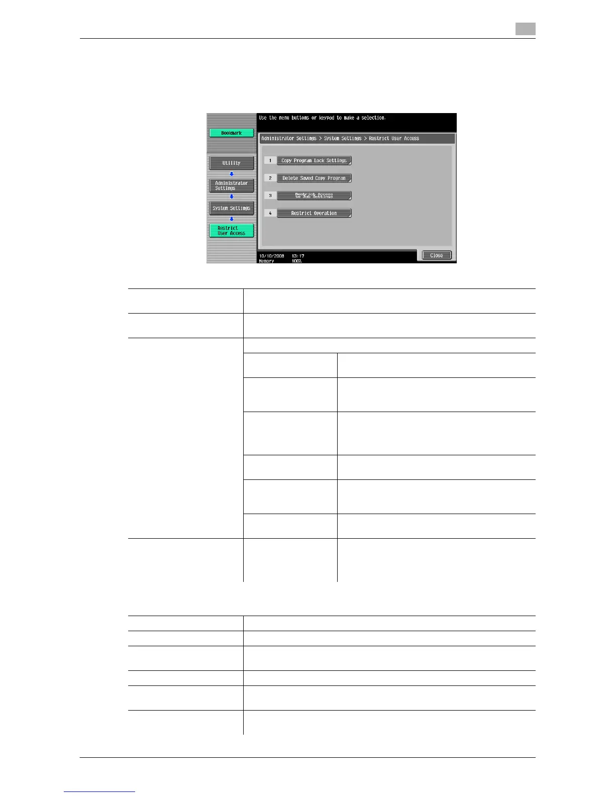 % Press the [Utility/Counter] key ö [Administrator Settings] ö [System Settings] ö [Restrict User