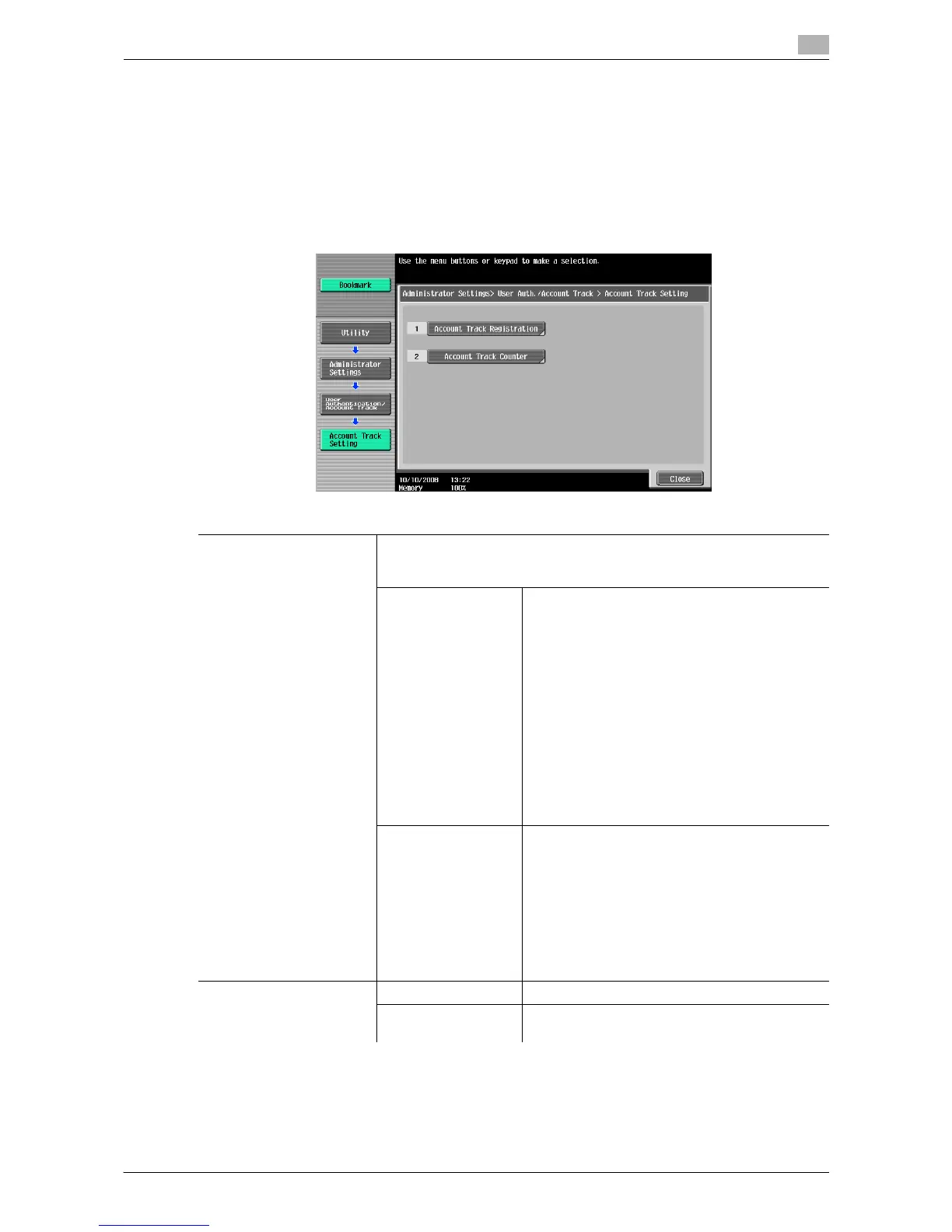 % Press the [Utility/Counter] key ö [Administrator Settings] ö [User Authentication/Account Track] ö