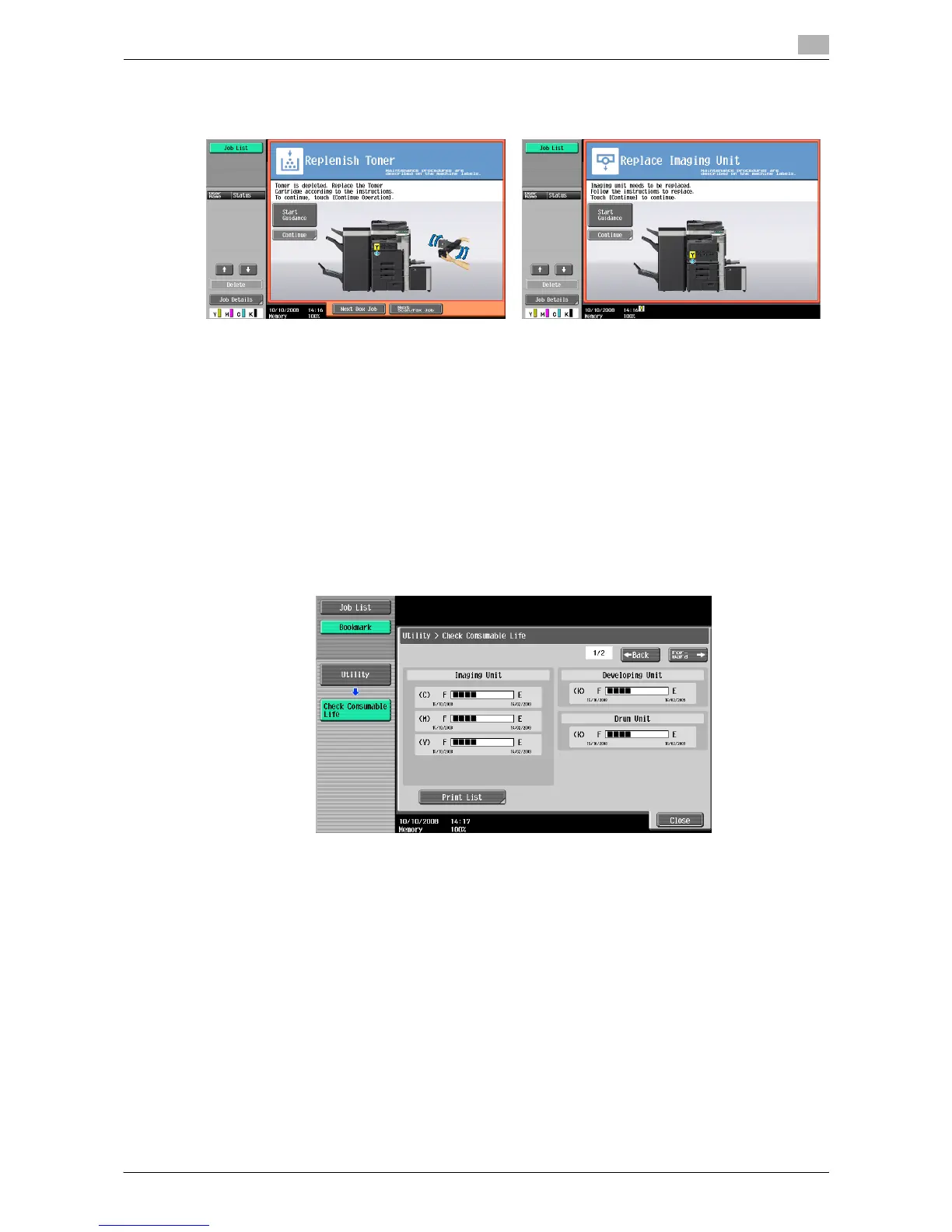 In the Check Consumable Life screen, you can check the status (usage level) of consumables.