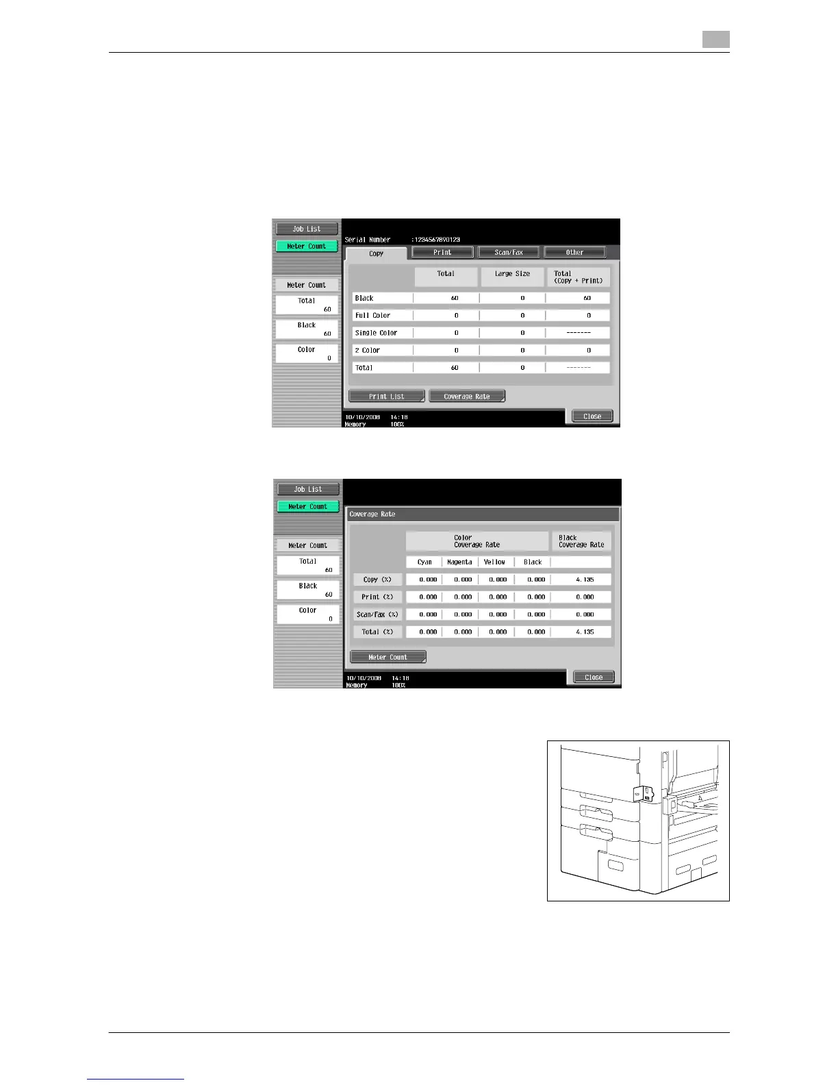 Rate screen, the consumed amount of toner can be viewed.