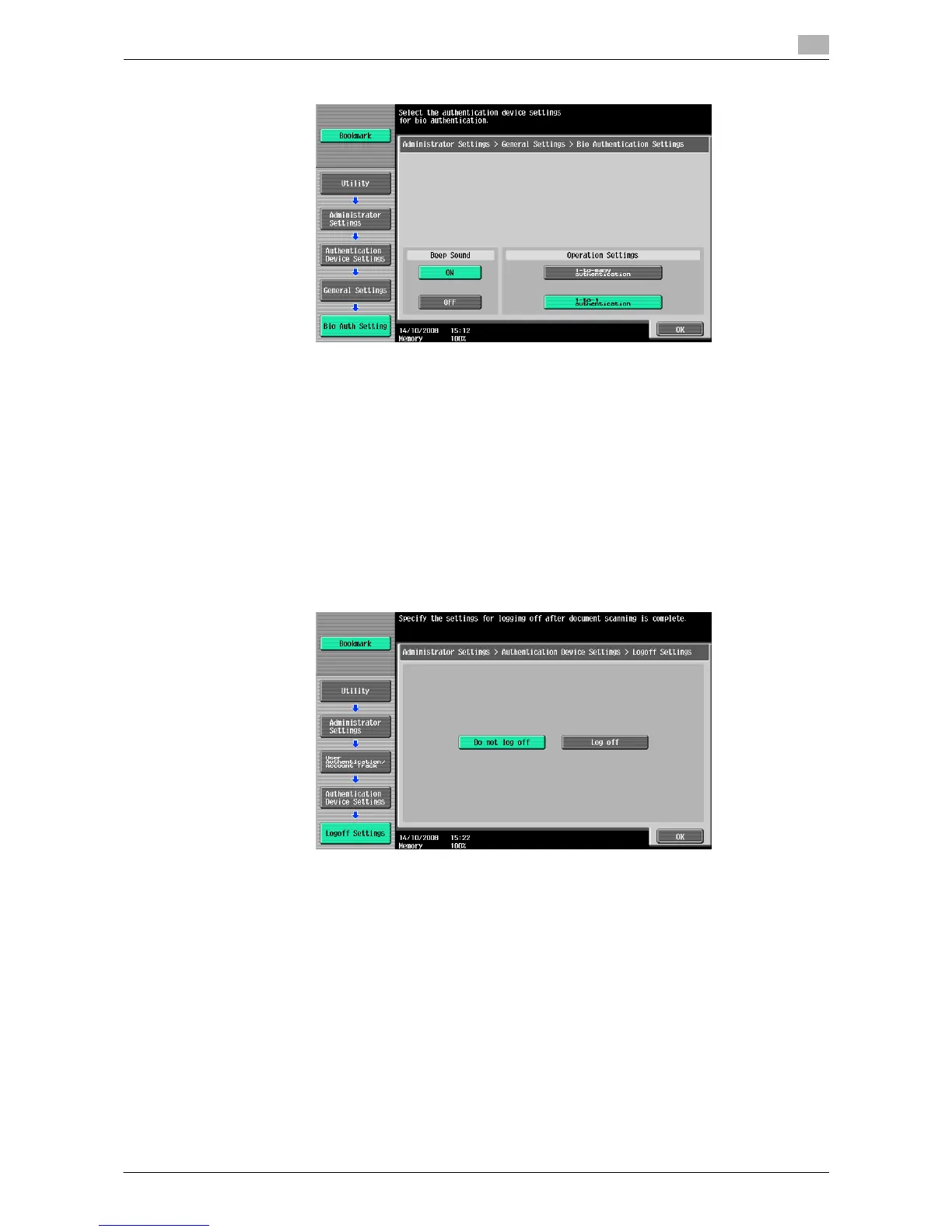 12 Press [2 User Authentication Settings].