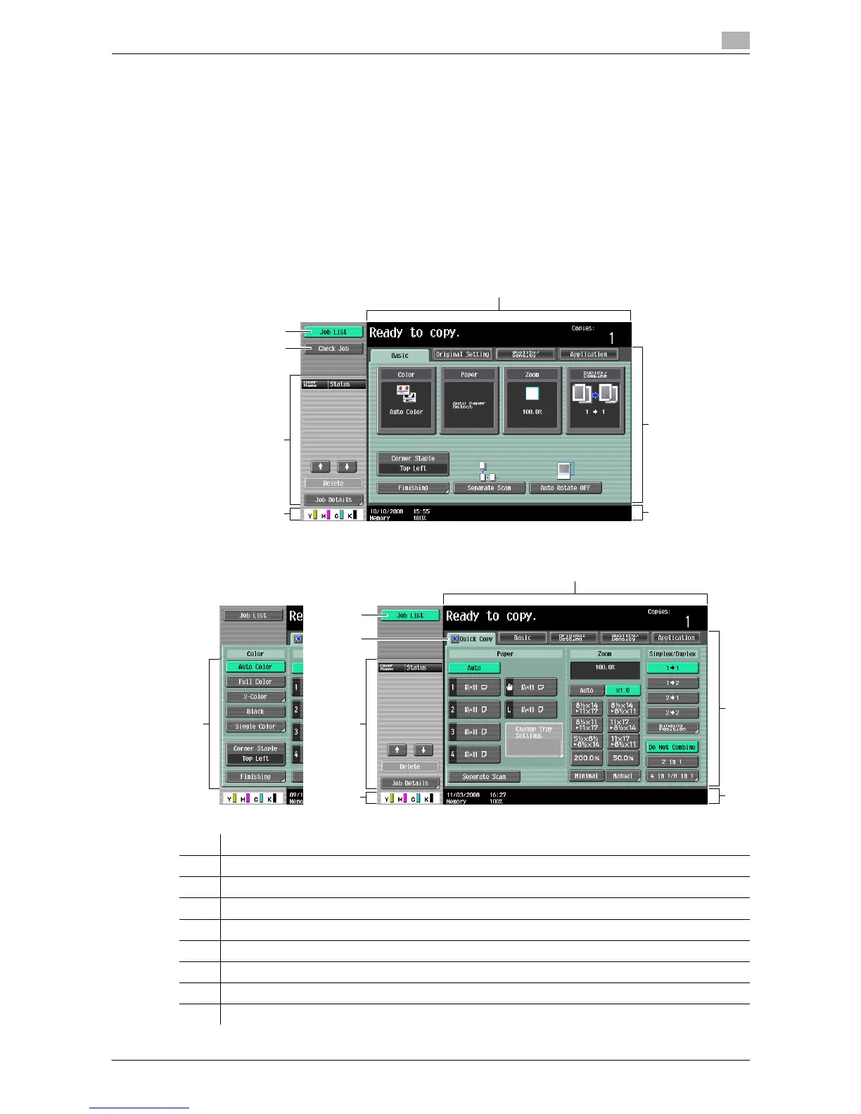 the buttons and screens differ with the Basic tab and Quick Copy tab; however, the functions that can be set