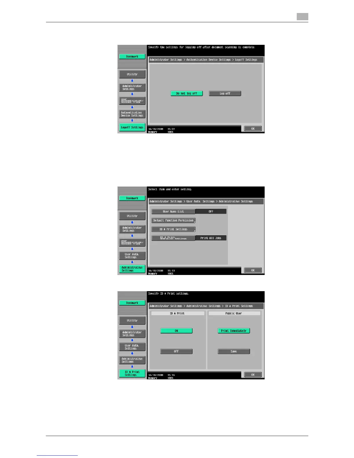 15 Press [ON] under "ID & Print", and then press the [OK] button.