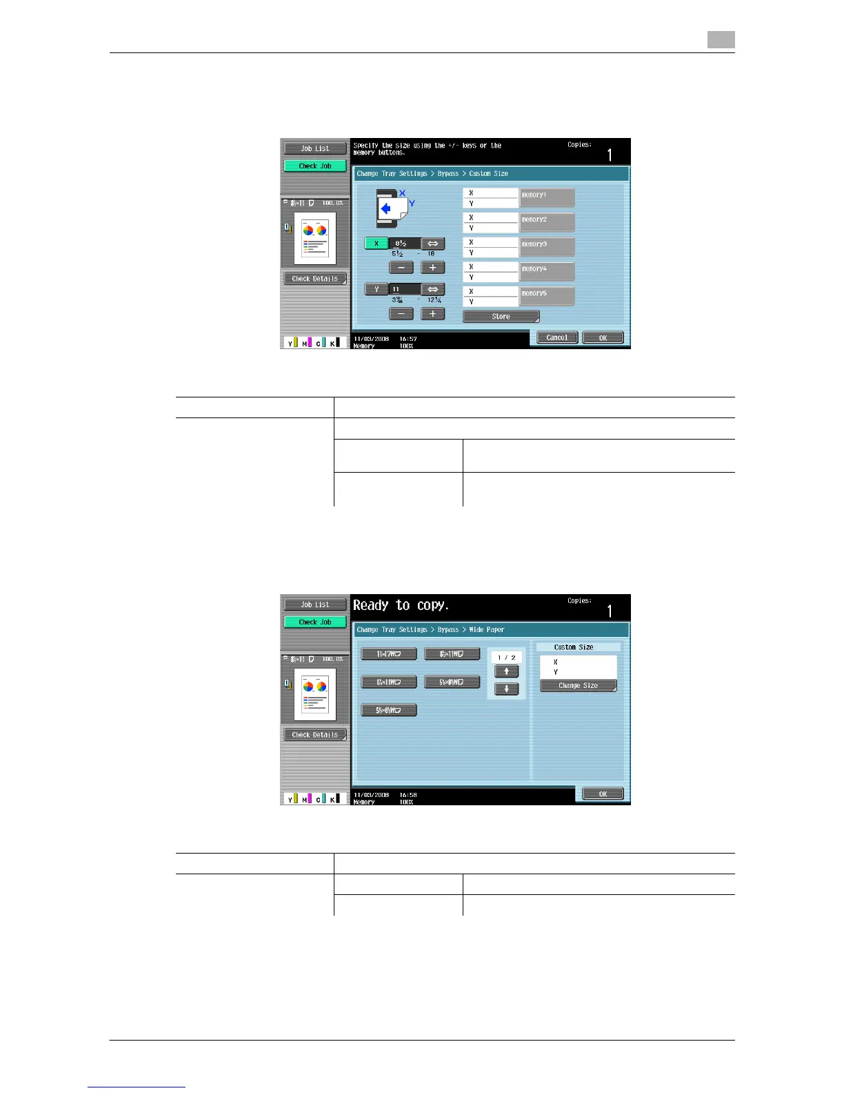 % [Basic] ö [Paper] ö [Bypass Tray] ö [Change Tray Settings] ö [Custom Size].