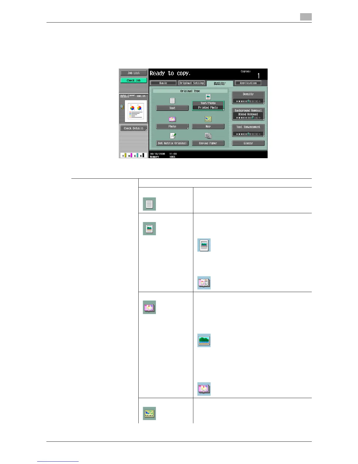 Select the setting for the image type of the original to better adjust the copy quality/density.
