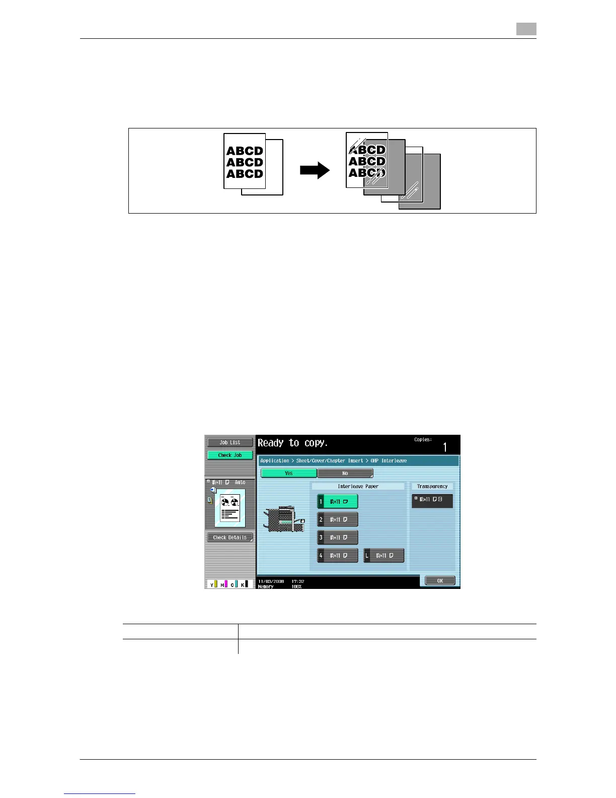 5 Press [Application] ö [Sheet/Cover/Chapter Insert] ö [OHP Interleave].