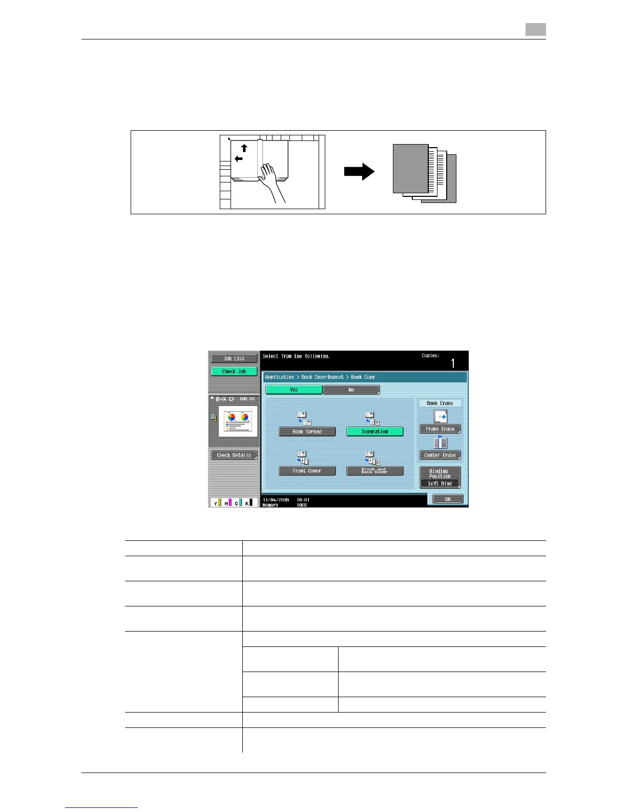 0 When [Book Spread] or [Separation] is selected, pressing the [Start] key starts printing.