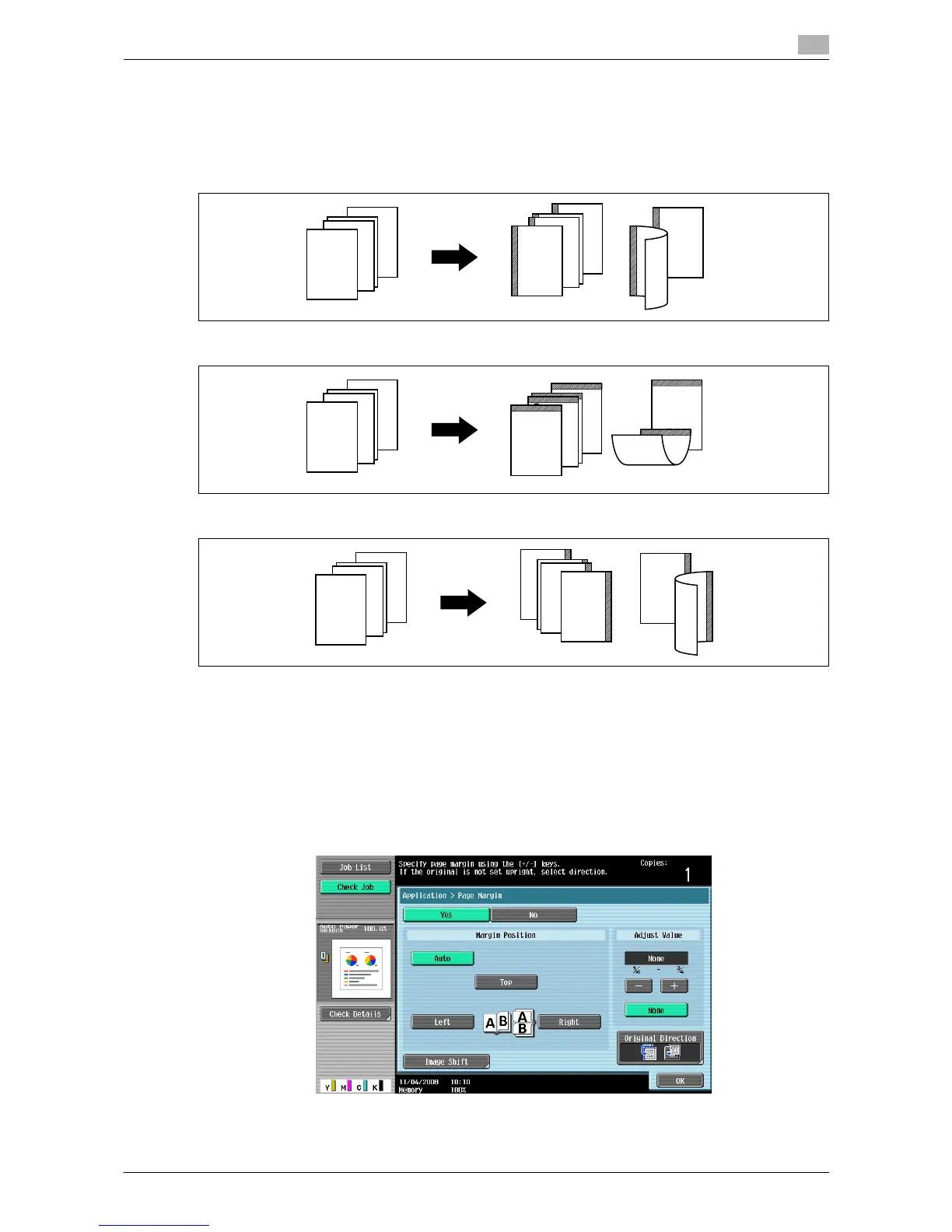 Copies can be printed with a binding margin so that the pages can easily be filed. When scanning a 2-sided