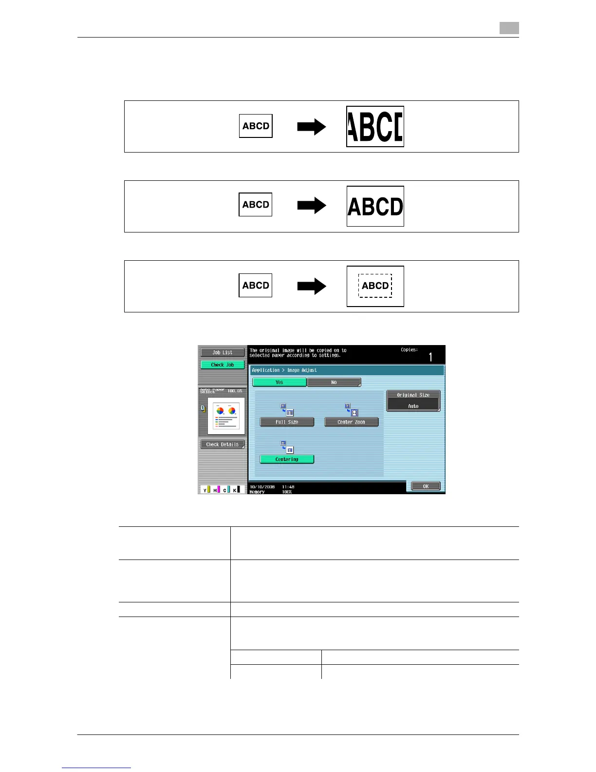 Center Zoom Enlarges the image up to the largest possible paper size that can contain the