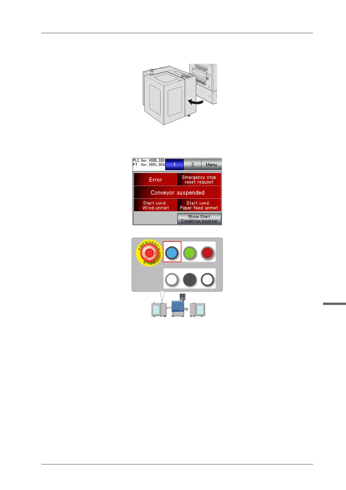 - Confirm all the covers are closed, press EMG.RESET to reset the emergency stop.
