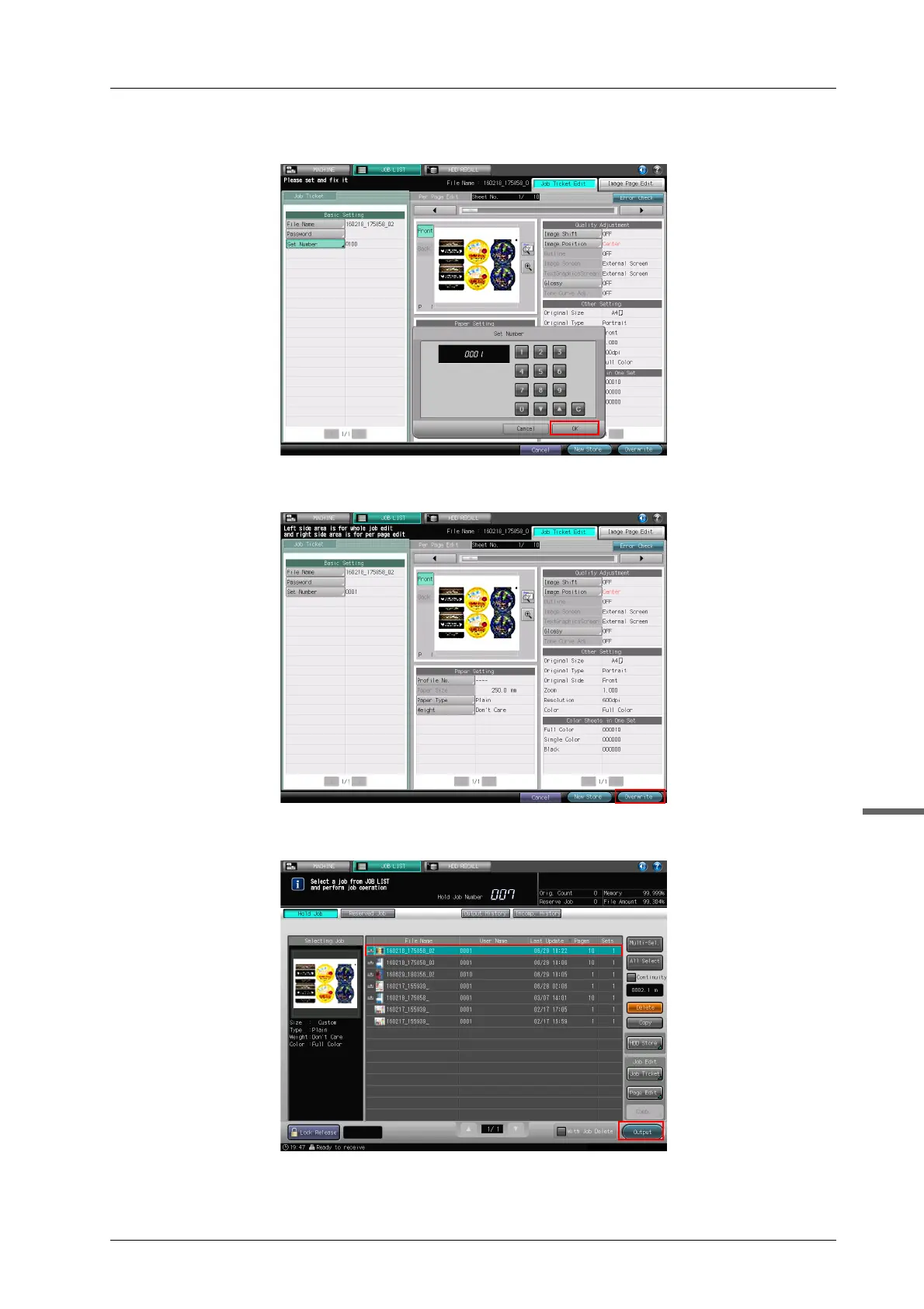 E Enter the number of copies for test printing, then press [OK].