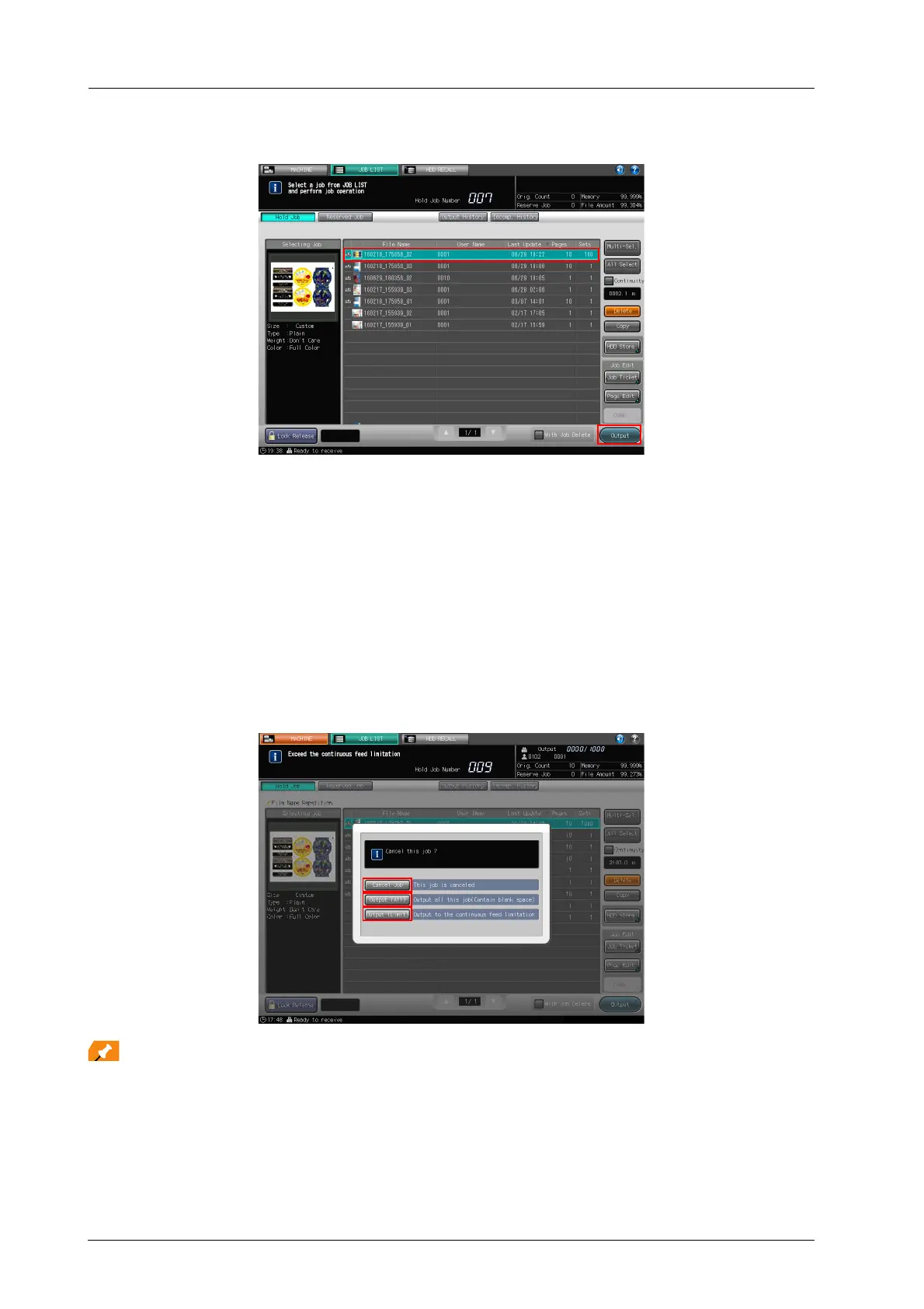 - It is recommended to press [Job Ticket] and reconfirm [Set Number], [Paper Type], and [Thickness]