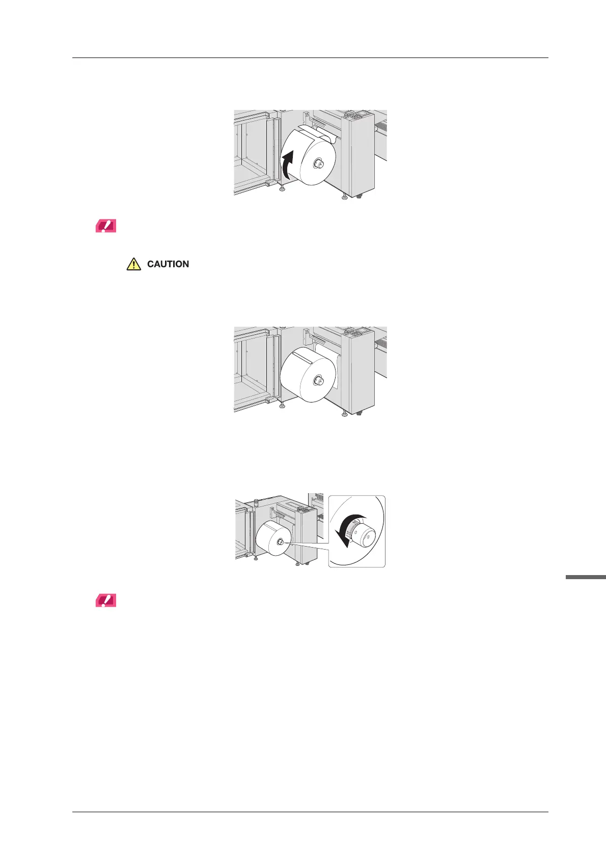 E With holding the media, turn the lug protruding/retracting handle of Roll Winder