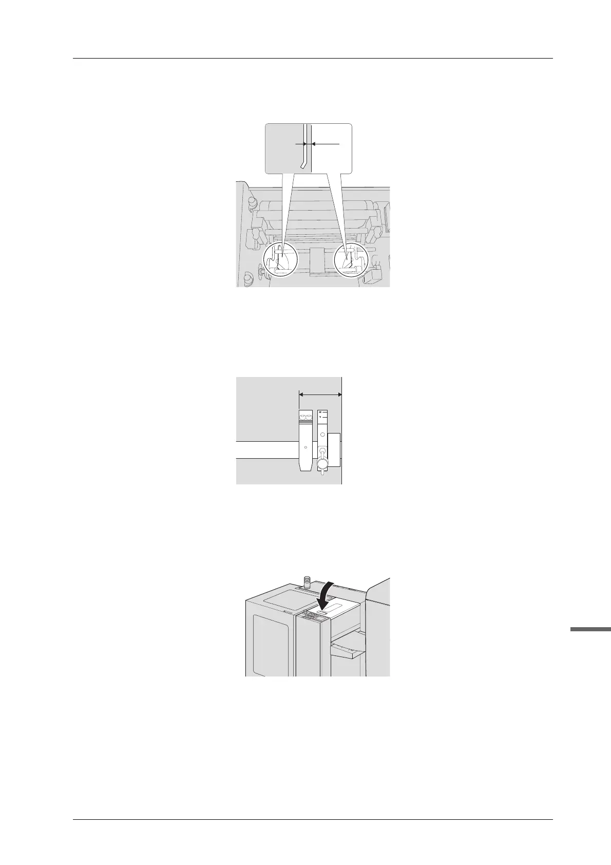 F Make sure that the media guide (back side) is positioned 105 mm (±0.25 mm) / 4.13"