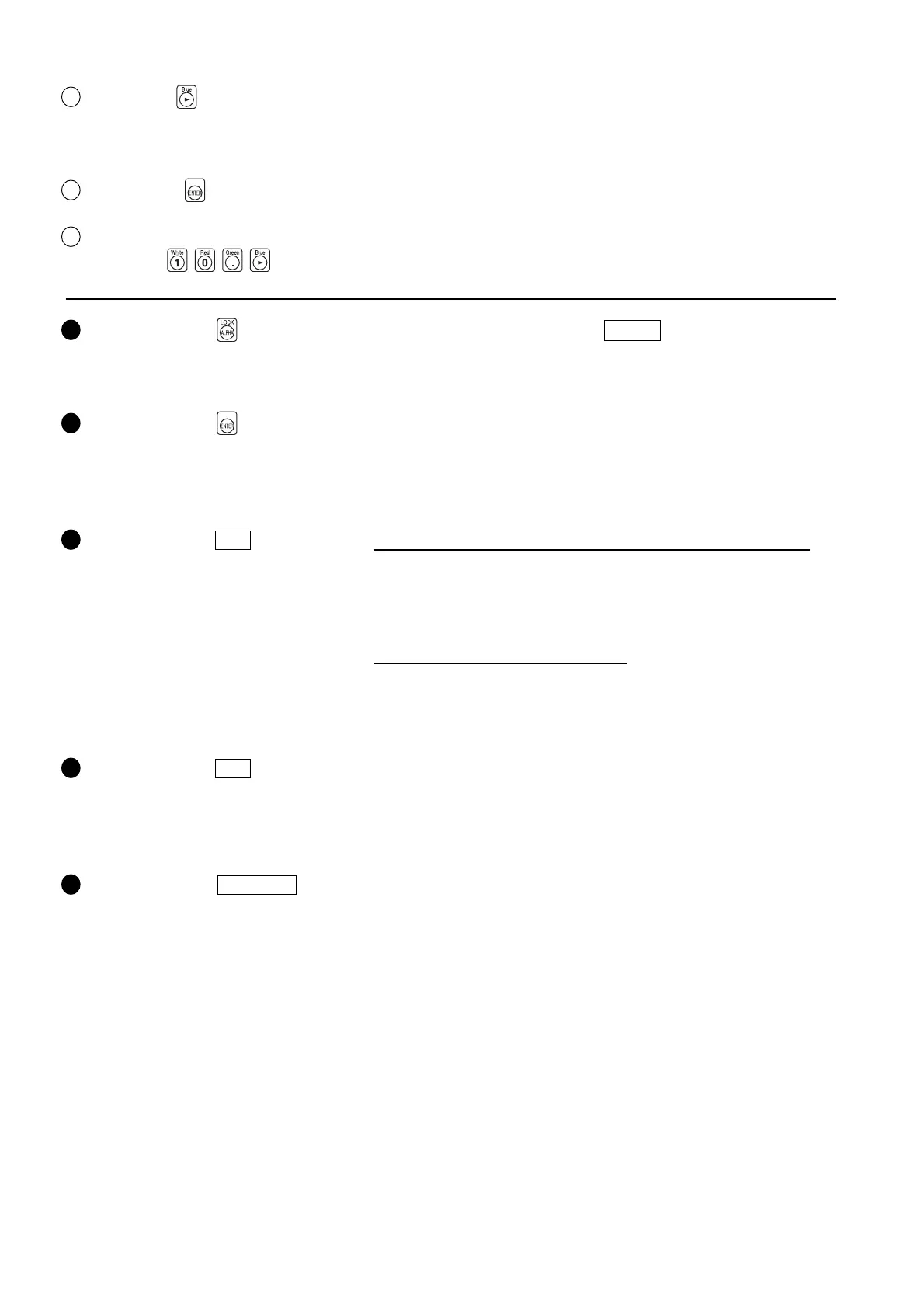 1 Holding down the key ....................... Locks all the keys except for the 0-CAL key. Holding down this