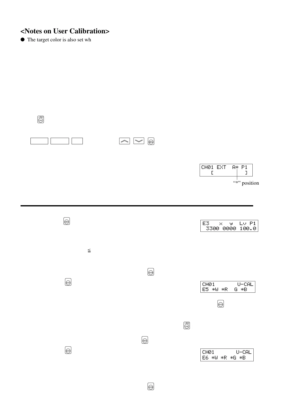 ● Never press the following keys during user calibration. Doing so will cancel user calibration and activate the