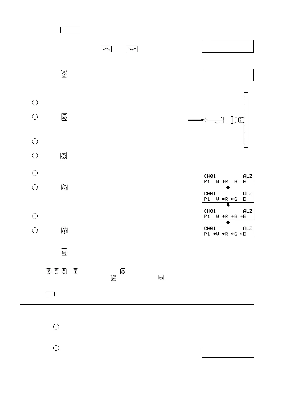 Pressing the MR key displays “100.0” as the target color value for R, B and G.