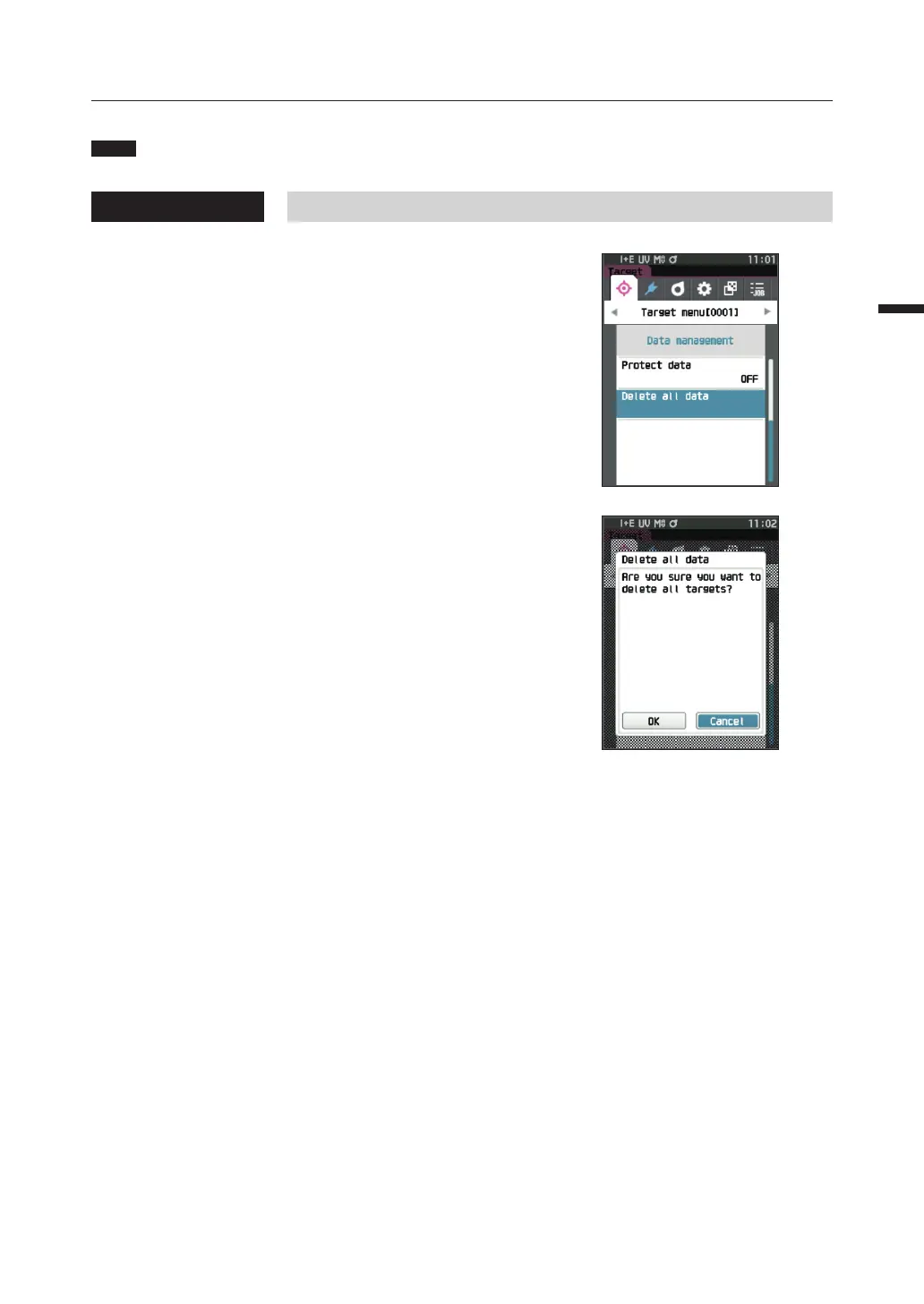 When the data is protected, “Delete all data” cannot be selected on the <Data management> screen.