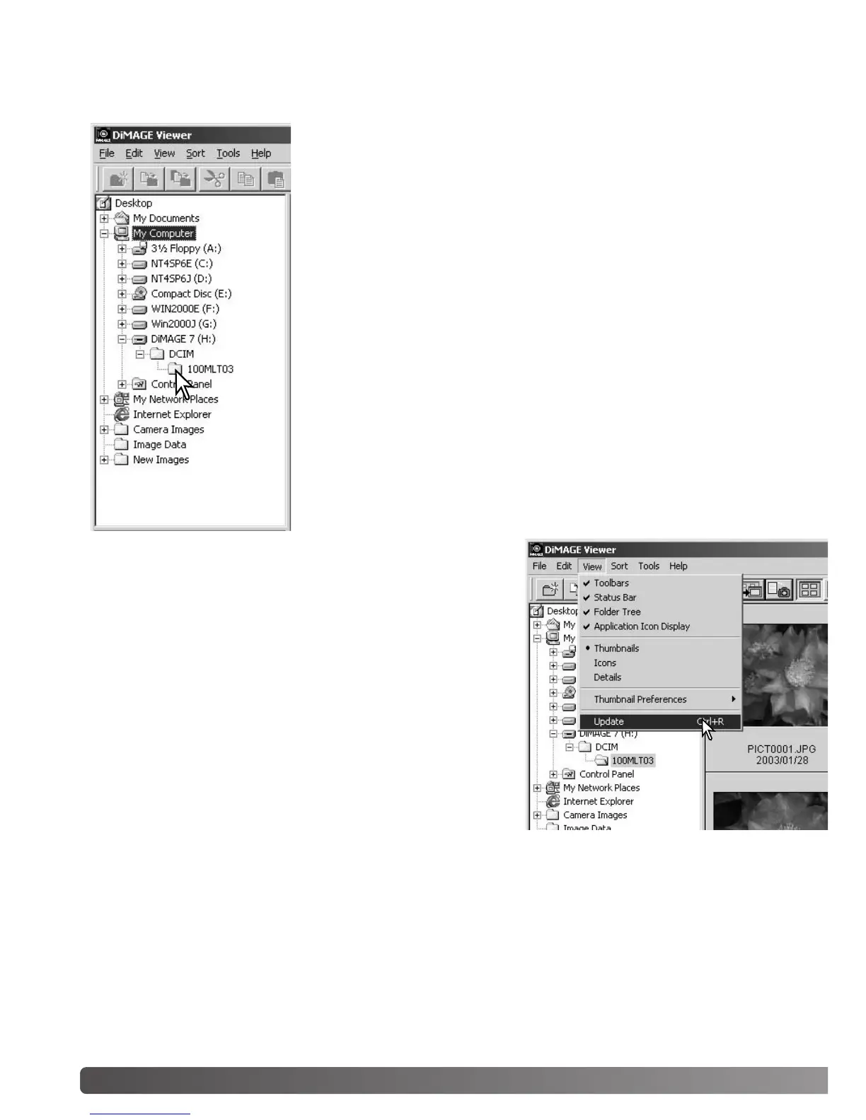 from the view menu to update the DiMAGE Viewer.