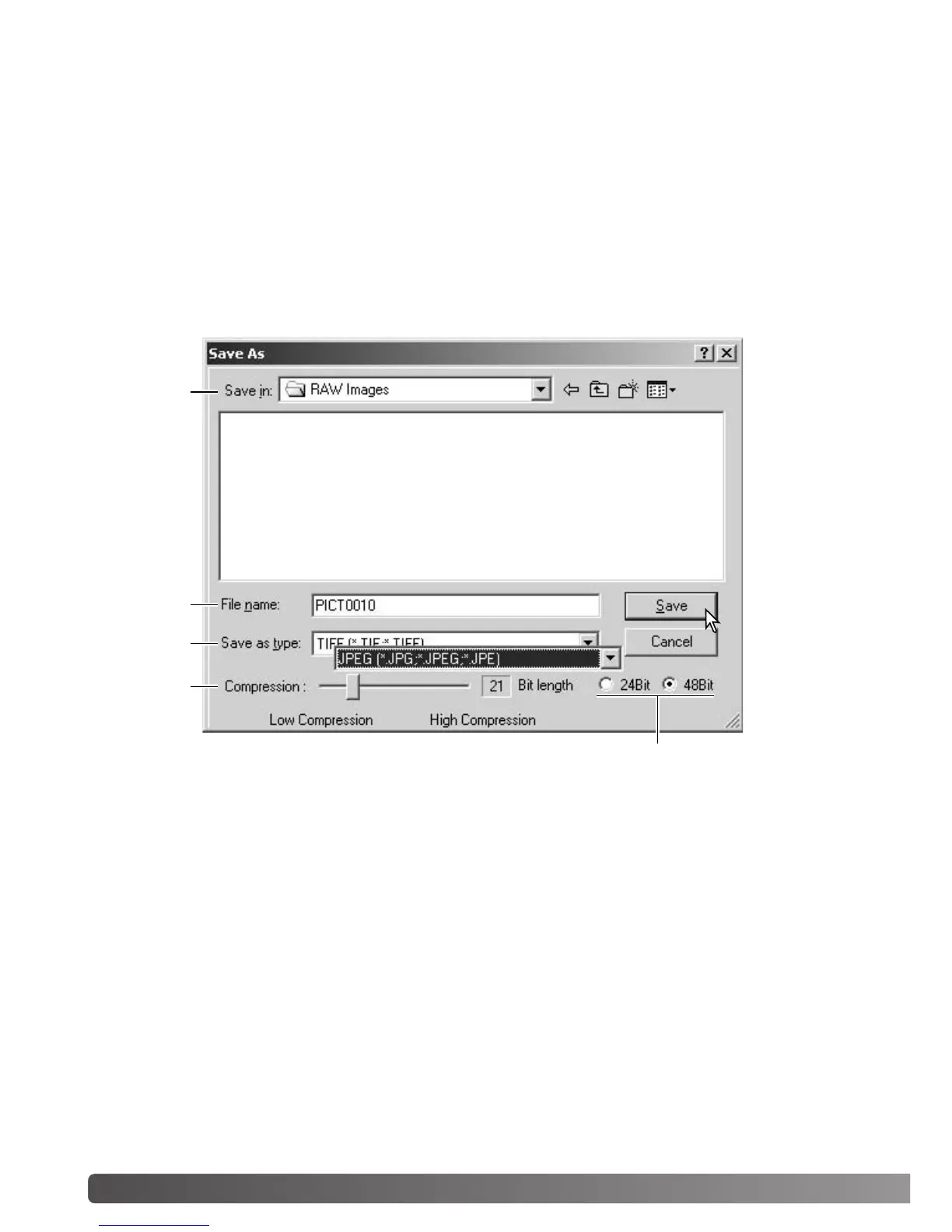 function is used (p. 38), the file can only be saved as 24 bit. If saved as a JPEG file, the compression
