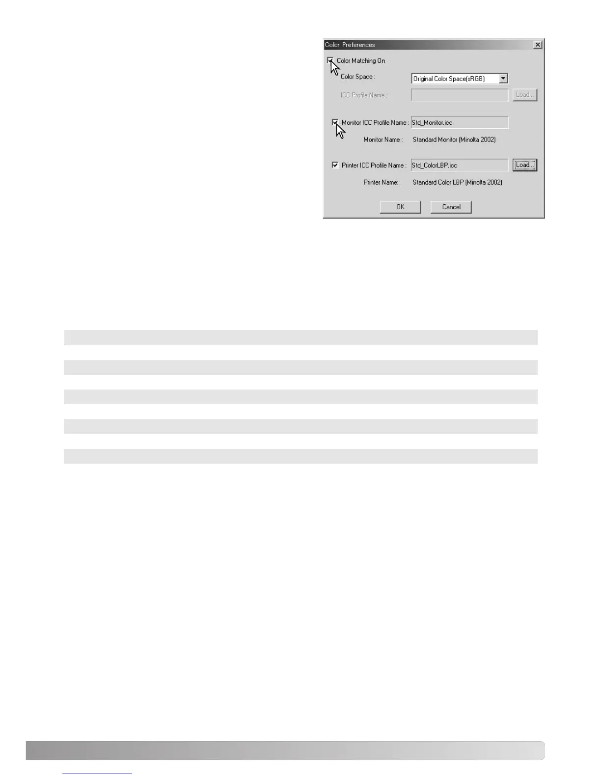 Generic monitor and printer profiles are supplied with the DiMAGE Viewer. In Windows, the profiles