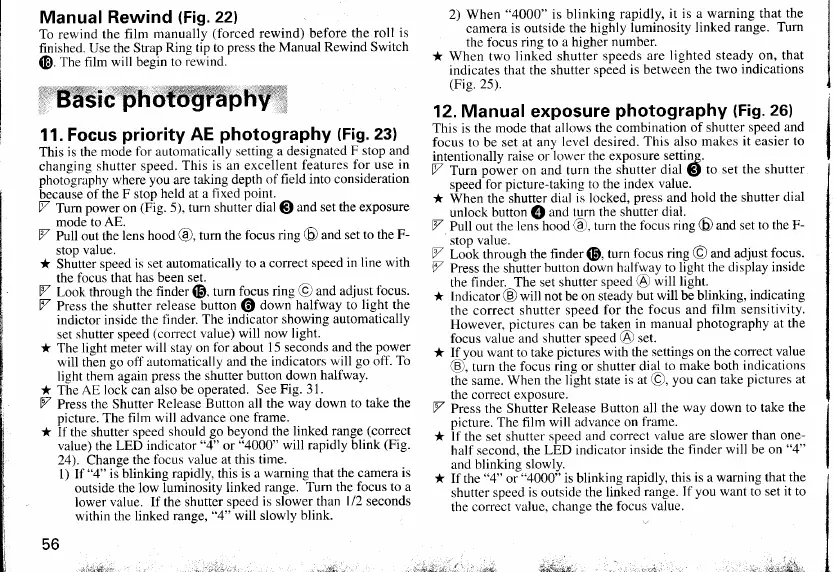 Konica Minolta HEXAR RF - Basic photography; Focus priority AE photography; Manual exposure photography