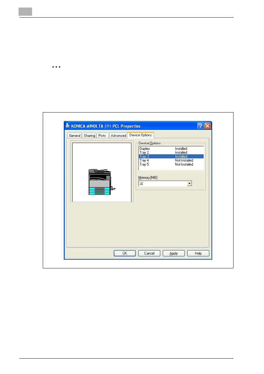 If the options installed on the machine are not specified from the Device