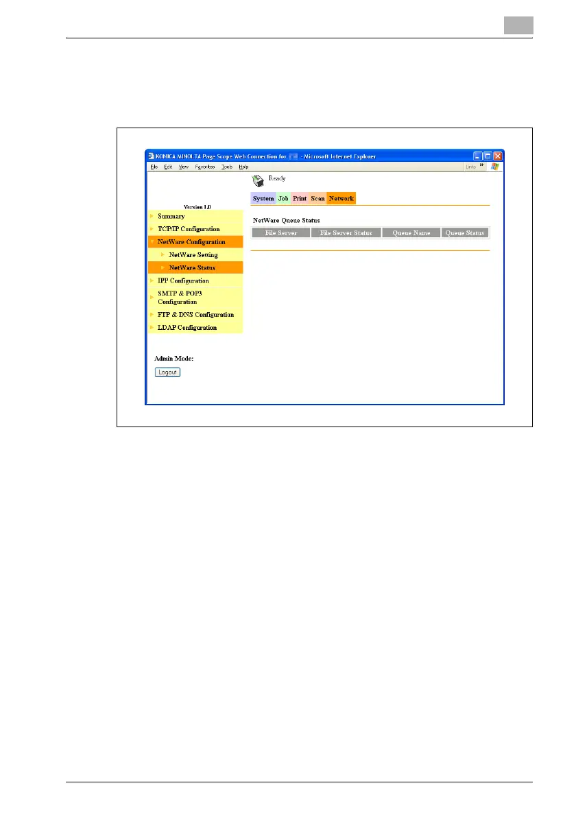 Konica Minolta IC-206 - Network Tab - Netware Configuration - Netware Status