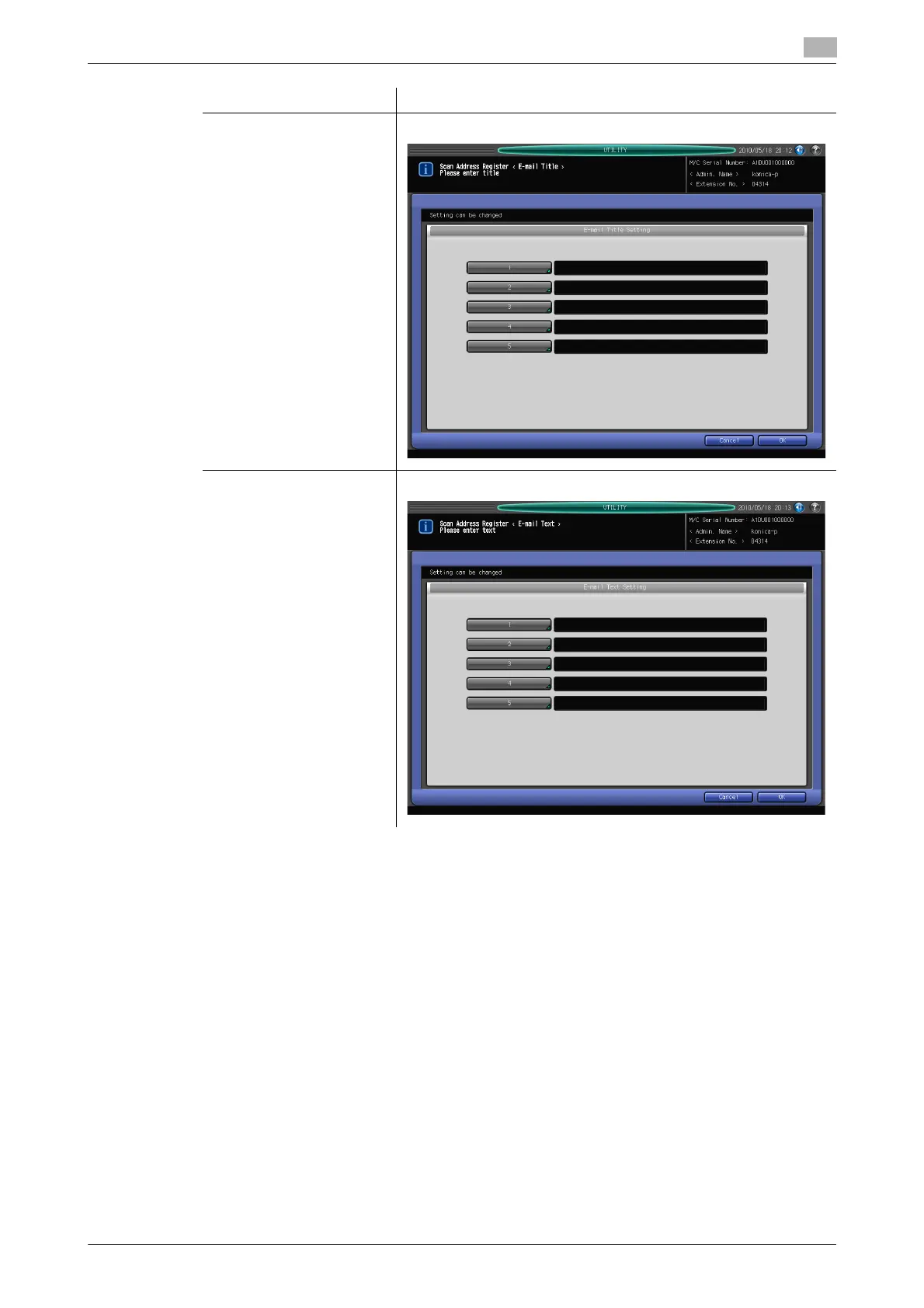 [E-mail Text Setting] You can register up to 5 texts for an E-mail.
