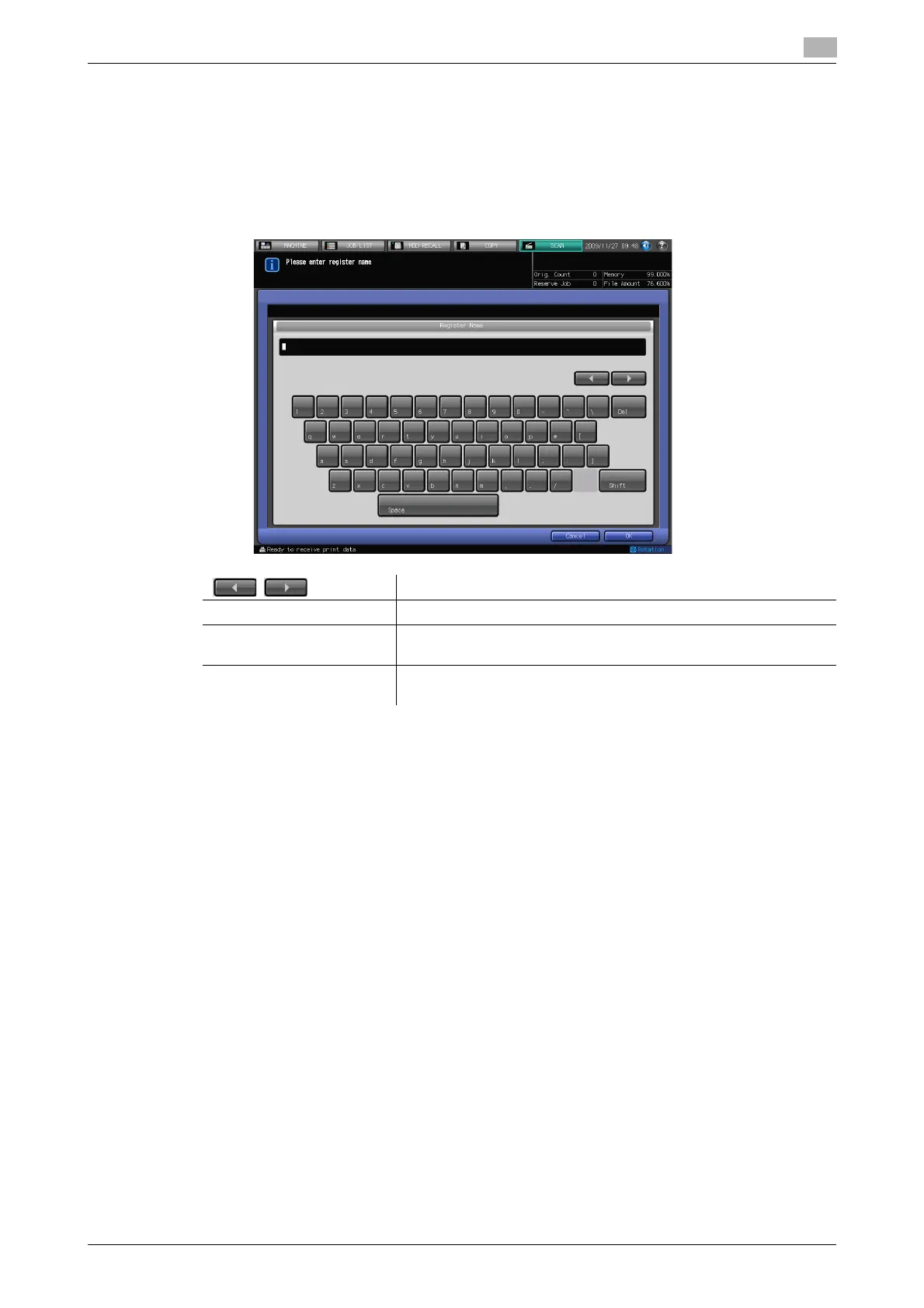 Keys on the character input screen are described here.
