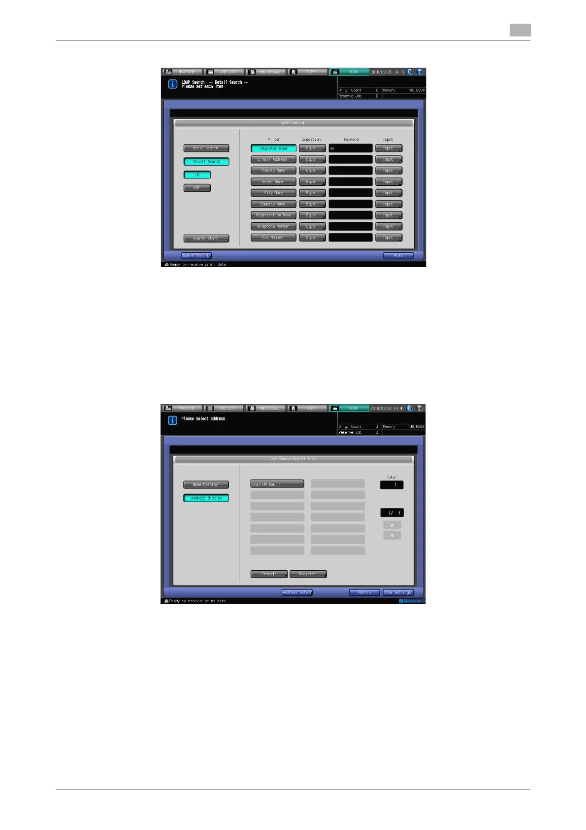 % [Detail Search] is for up to 256 and 64 input search characters for [Register Name]/[E-mail Address]