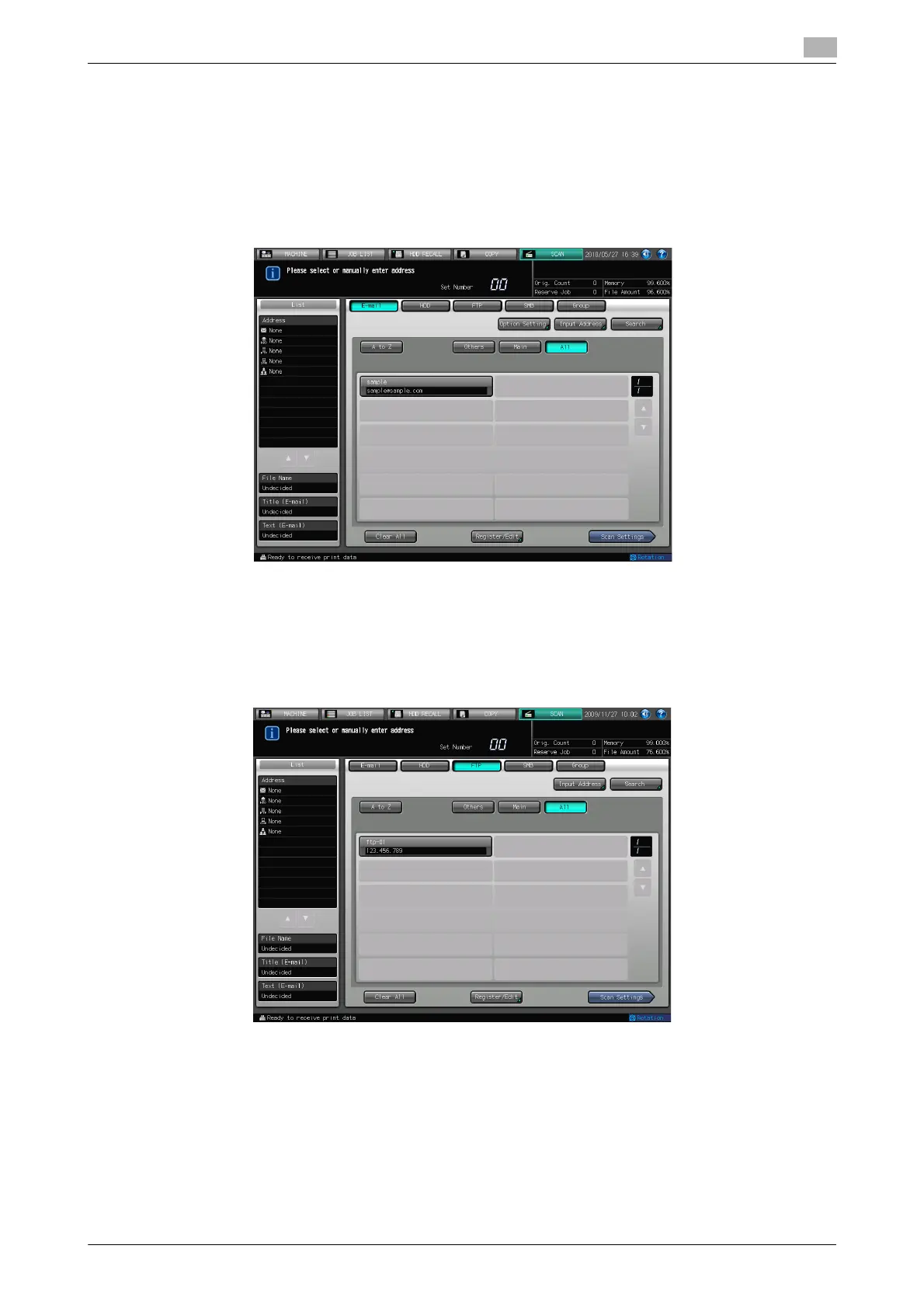 % In the initial settings, the Select Addresses screen (E-mail) is displayed. The default destination tab